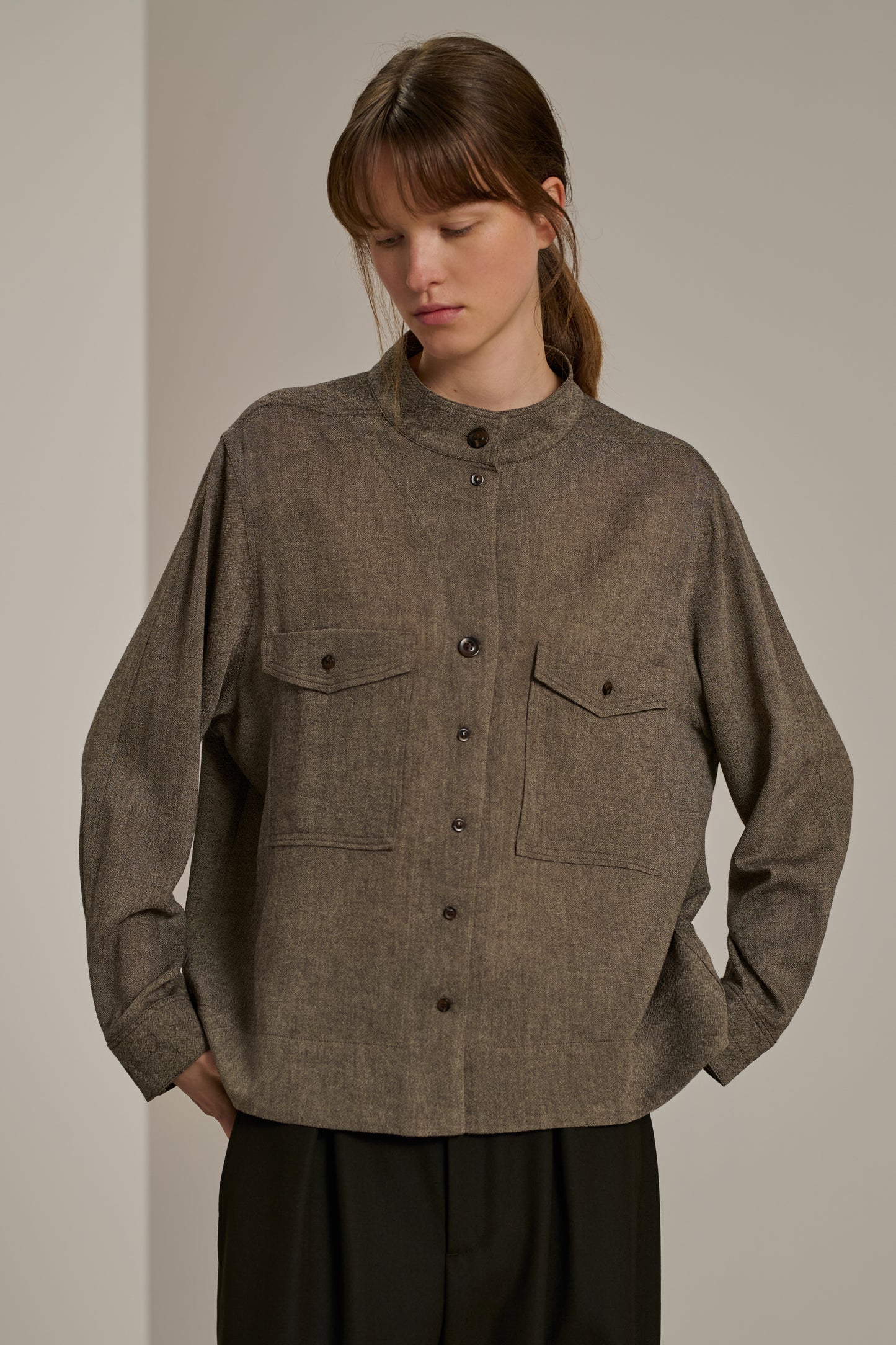 BLOSSOM is a wool crepe blouse that combines sophistication and modernity. The subtle cuts on the front, shoulders and sleeves add a distinctive detail, perfect for a chic and contemporary style.