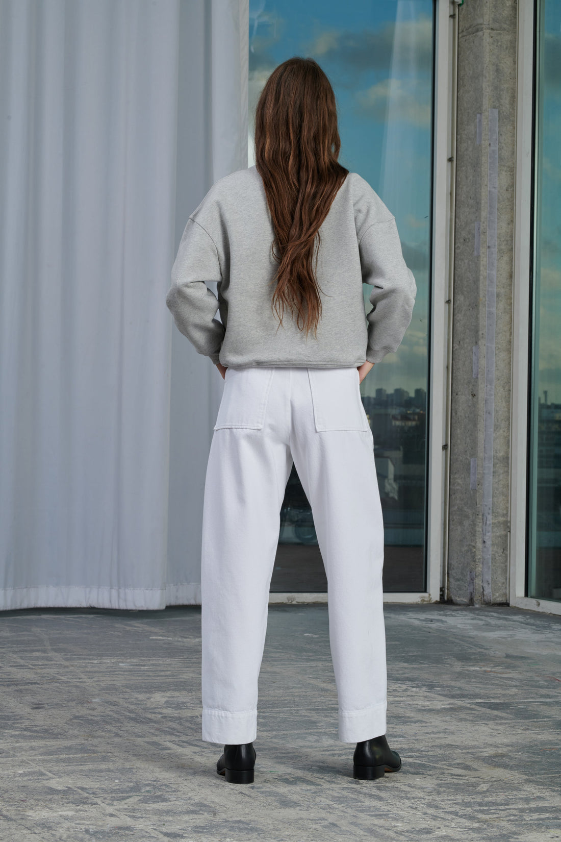 White denim high-waisted trousers