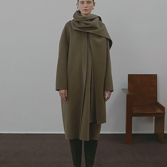 - Large integrated foulard, detachable with buttons