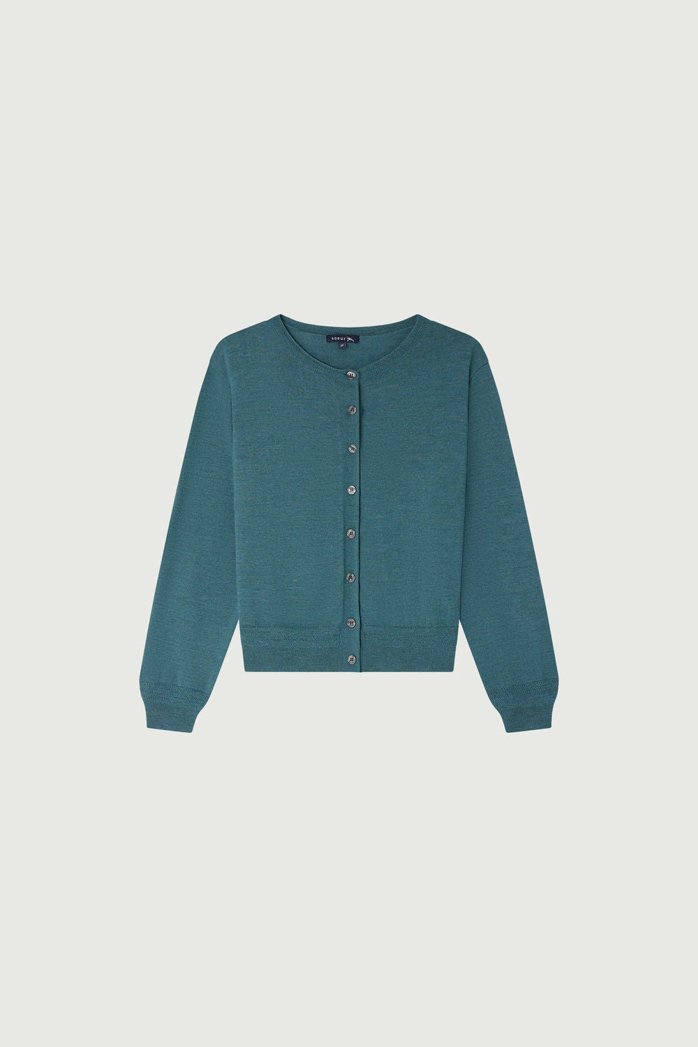 Cardigan carré court en laine mérinos bleu céladon