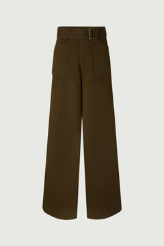 - Cabas XL en canvas enduit kaki et anses en cuir marron foncé