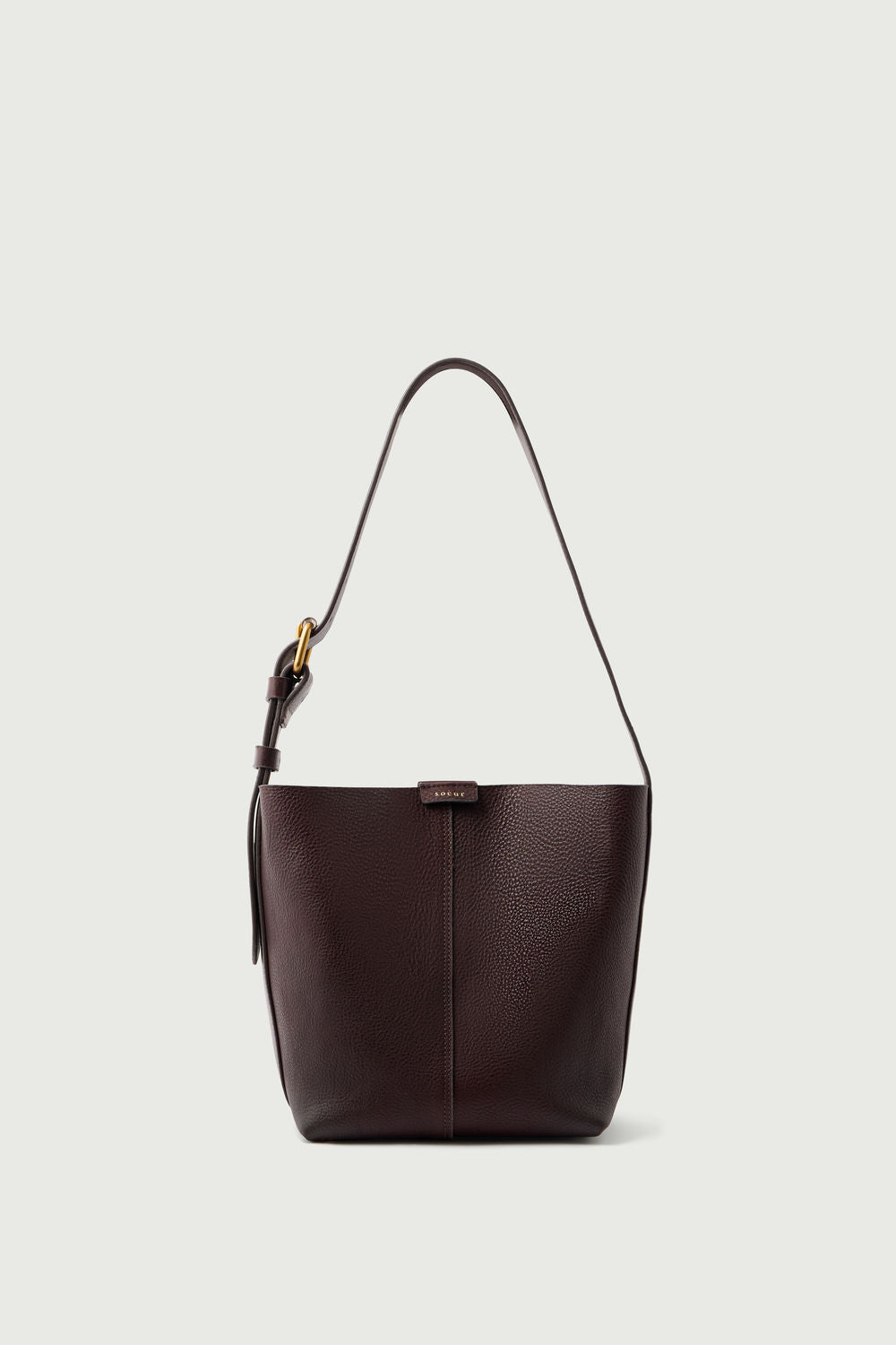 Sac sceau bicolore en cuir grainé marron foncé marron foncé
