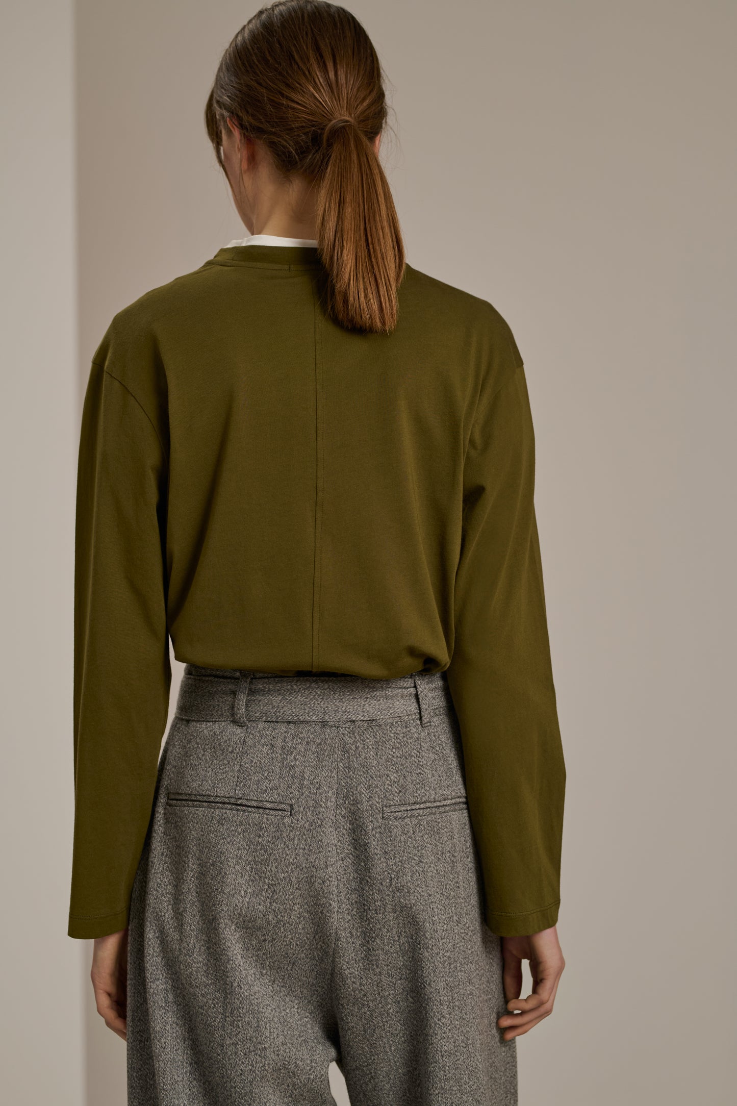 ADELIE est un t-shirt manches longues en coton extra-fin. Les épaules et le milieu devant sont soulignés par des coutures décalées surpiquées qui apportent du relief. Le coton Supima® offre à ce jersey d'exception une main douce et respirante, comme un tricot "seconde peau".