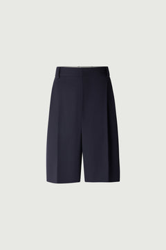 GIANI est une veste tailleur en gabardine de laine vierge bleu nuit. Son volume ample et son col tailleur rappellent les codes du vestiaire masculin. Entièrement doublée, elle assure confort et style.